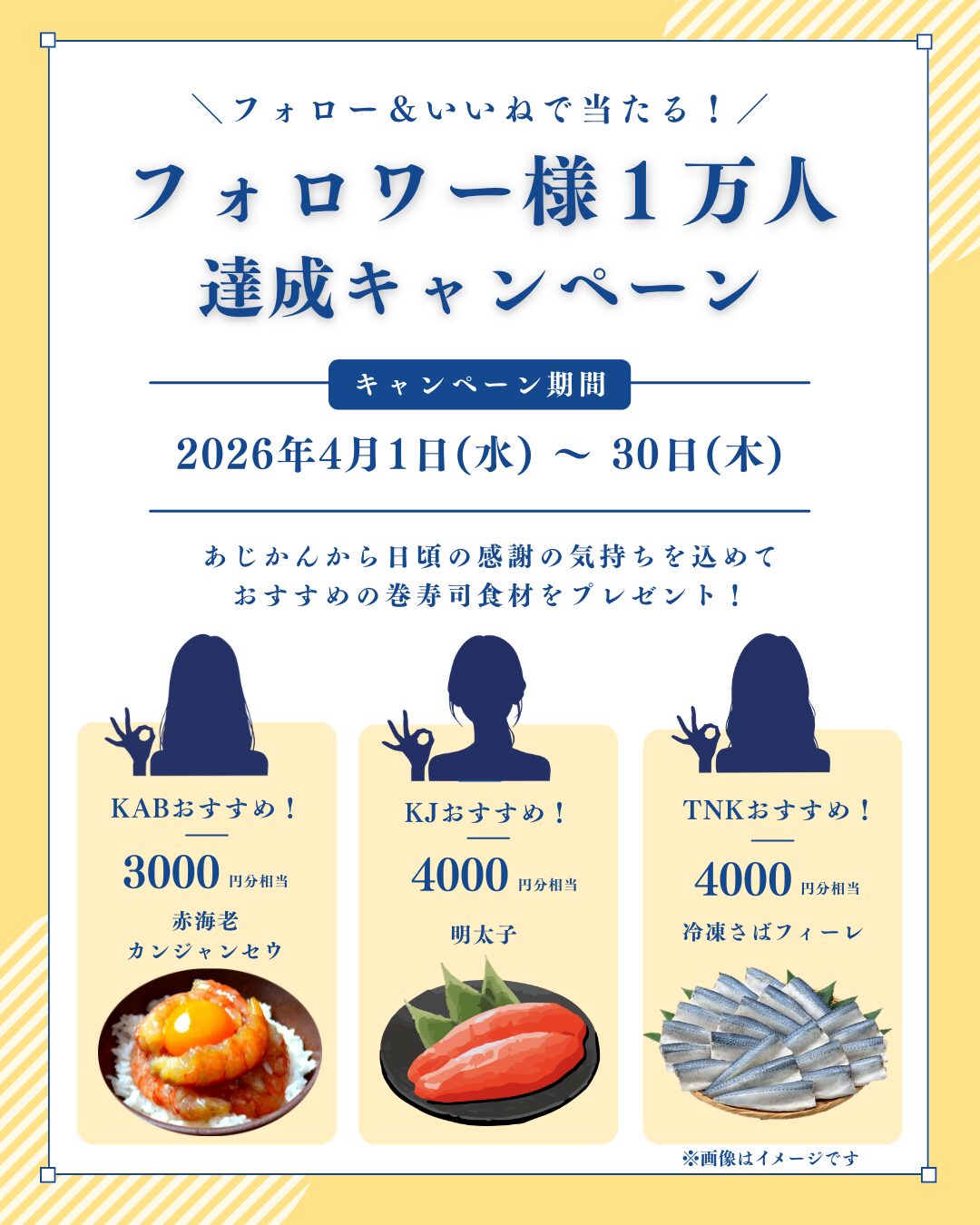 4/1(水)開始!フォロワー1万人達成キャンペーン