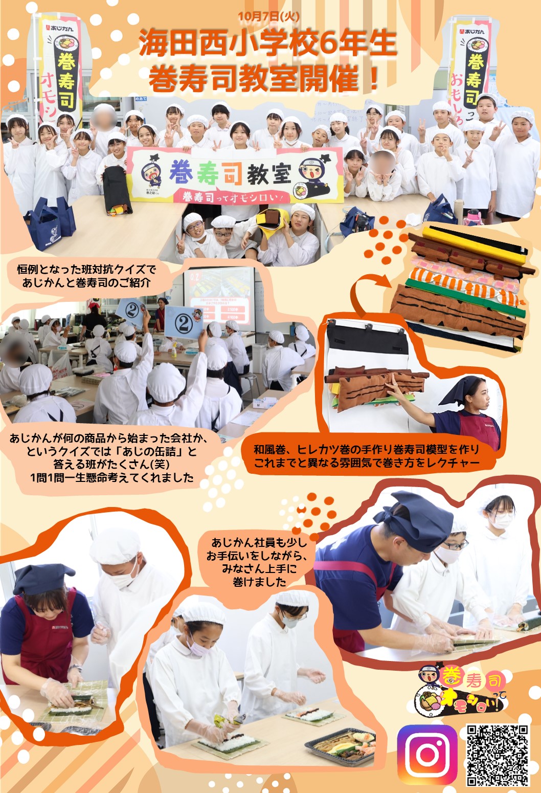 【海田西小学校6年生の皆さま×あじかん】巻寿司教室を実施しました★